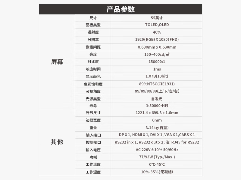 4、顯著的透明度:OLED透明屏的透明度非常高,可以達(dá)到70%以上的透明度,這使得它能夠在透明表面上顯示圖像和文字,同時不會遮蓋背景。OLED透明屏還具有更好的自發(fā)光特性,可以實現(xiàn)更高的亮度,并消除了傳統(tǒng)液晶屏的泄漏問題。