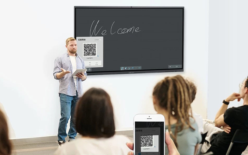 四、一鍵分享掃碼帶走:批注和手寫的內容可以統一保存為一個會議記錄,會議結束后,除了可以保存到本地和U盤外,還可以使用顯示屏的一鍵分享功能,將會議記錄通過發送郵件、掃描二維碼等方式,快速的分享給相關人員。