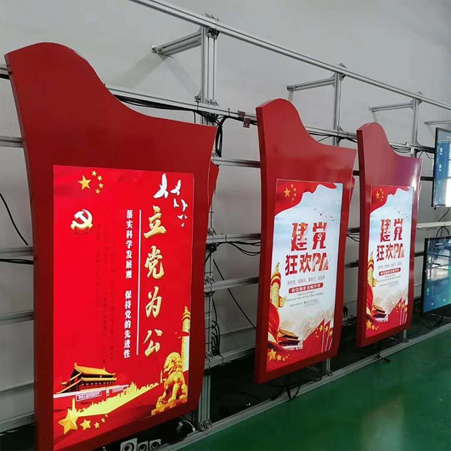 將黨建宣傳紅色文化以海報(bào),宣傳圖片、視頻、黨的風(fēng)貌建設(shè)歷程等在黨建一體機(jī)上展示給來(lái)訪人群,韋斯特黨建一體機(jī)替代了傳統(tǒng)的紙質(zhì)廣告牌、黑板報(bào)等的展示方法,宣傳方式更加深入人心、大氣、便捷。