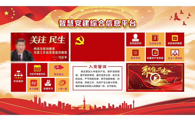 二是先鋒宣傳打造紅色榜樣。在黨建一體機上可以對出色黨員、黨務(wù)工作的亮點表現(xiàn)進行宣傳;對重要的黨建會議、黨建活動相關(guān)內(nèi)容進行宣傳展示。讓黨員、群眾更便捷的接受黨建熏陶,提高黨性。