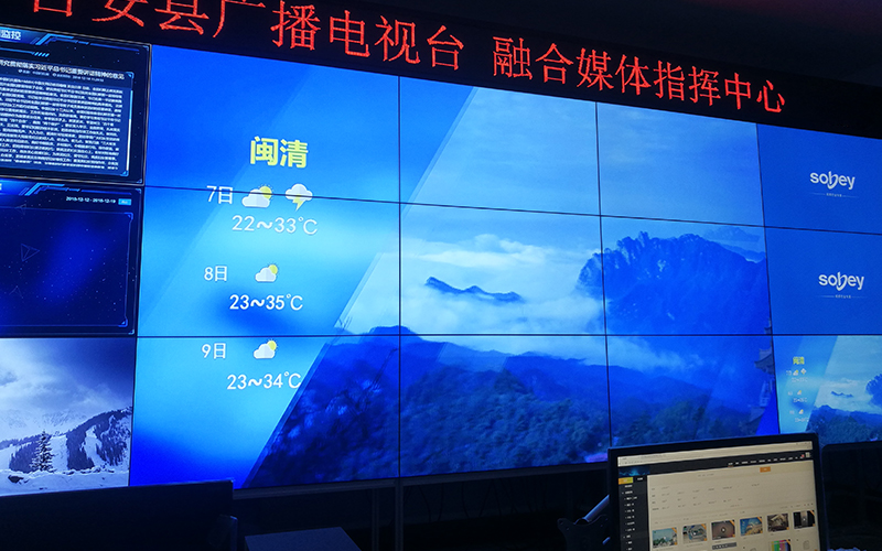 軟件拼接系統是利用軟件對圖像進行分割,如三星55英寸拼接屏幕系統。通過使用軟件方法對圖像進行拼接,可以靈活地控制大屏幕電視墻的圖像,例如在任何位置打開窗口。任意放大和縮小,使用鼠標拖動任何打開的窗口。有了這個功能,控制控制臺上的監控電視墻就像控制你自己的液晶顯示器一樣方便。而軟硬件結合的大屏幕電視墻體拼接系統正是兩者的結合,并且克服了兩者的缺點,應用范圍更加廣泛。