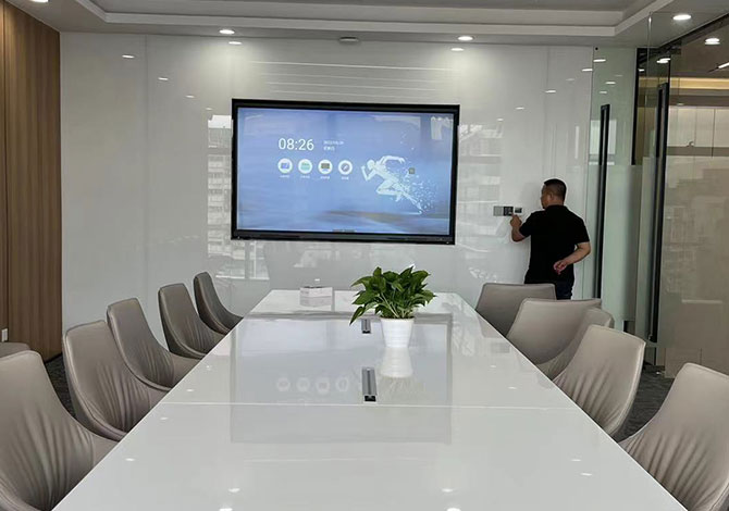 3.應(yīng)用環(huán)境要求高:投影儀一般只能在黑暗環(huán)境下使用,如果在亮度高的會議室使用,畫面會嚴(yán)重變白,清晰度低,投影效果差,如果關(guān)燈,拉窗布,會議室會變成小黑屋,光線這么暗,怎么做會議筆記?在演講互動中,很容易擋住投影儀的光線,然后觀看投影儀的人很難看到屏幕上的互動內(nèi)容。