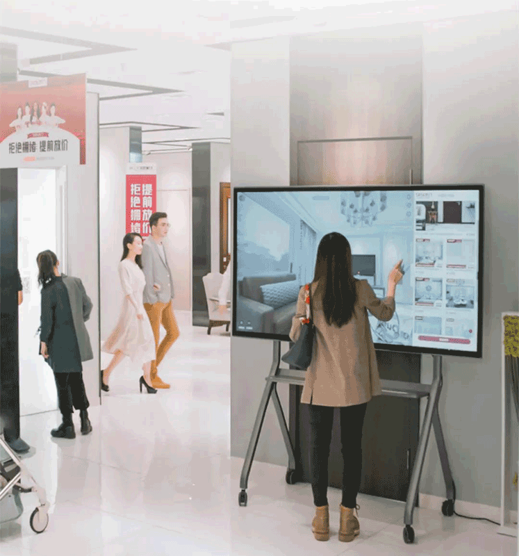 智慧門店通過重新定義數字化的宣傳模式,實現了精準的客戶引流,利用智慧云屏、櫥窗雙面屏、立式數字標牌等多種智能設備實現了全新的商品宣傳,解決了商家宣傳難得問題。 智慧門店以會議平板為窗口,借助智慧云屏呈現完整產品目錄,構建數字化展廳,無需考慮門店面積,適用高租金鋪面,產品展示清晰便捷,提高獲客水平,解放門店空間,有效提高評效,滿足家居、裝飾、4S店等客戶個性化定制需求,瀏覽商品同時可根據喜好調整配色、材質、實時展示定制化方案,可根據客戶需求現場調整,呈現VIP體驗,提高成交率。