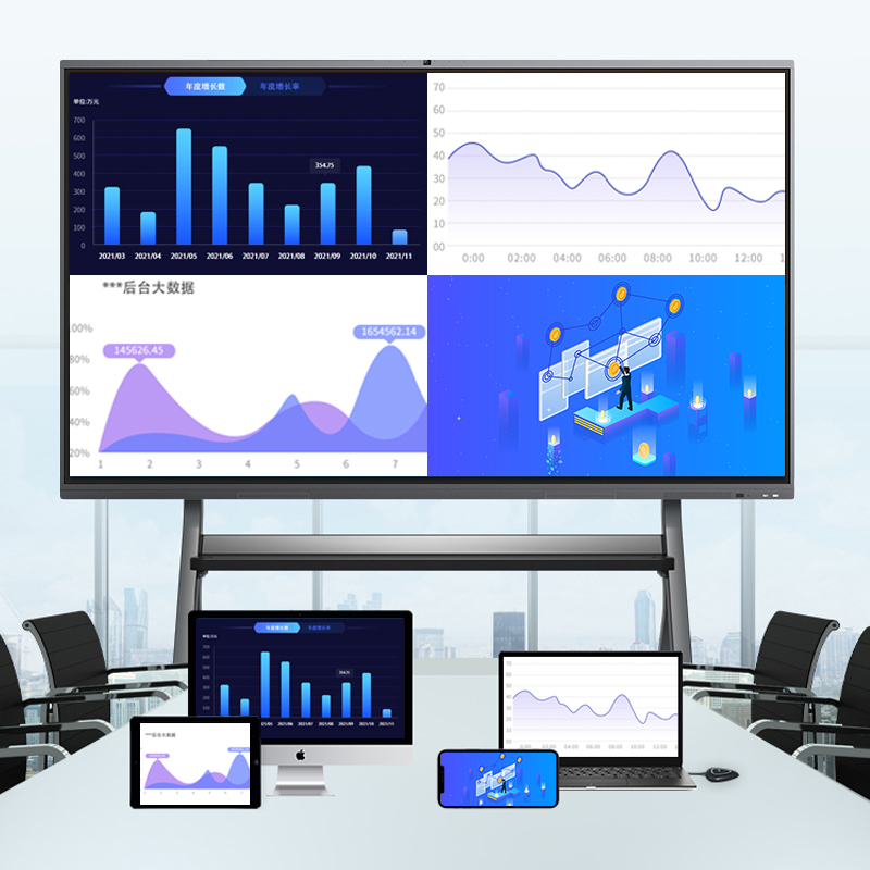 2.文件演示,比如幻燈片播放,Word文件注釋和會議演示。傳統(tǒng)會議用投影儀,你需要帶一臺電腦,各種數(shù)據(jù)線連接花費(fèi)很長時間,在整體過程中還擔(dān)憂斷線,還需要關(guān)了燈拉上窗簾。可是運(yùn)用了多功能于一體的會議平板后,可以使用內(nèi)嵌的無線功能,支持電腦和手機(jī)連接,電腦系統(tǒng)和Mac,手機(jī)Android和ios完全兼容,能夠無線同屏,支持四分屏等。