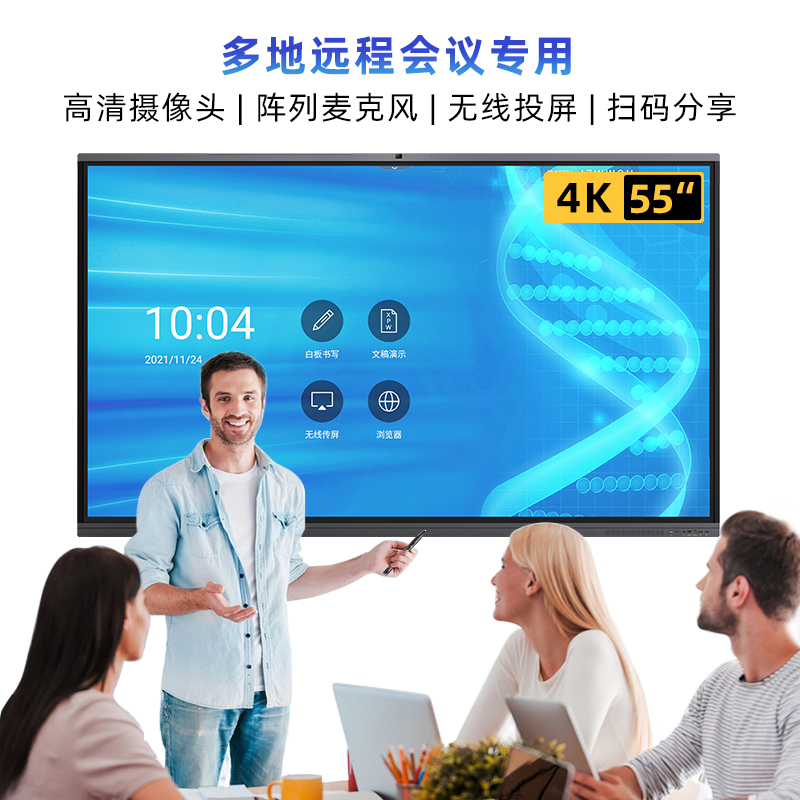 3、個(gè)人電腦、手機(jī)、平板可將4K畫面和音視頻,快速無(wú)線投屏及四分屏到會(huì)議平板上,并支持翻頁(yè)、批注等演示互動(dòng)、對(duì)比評(píng)審更靈活。?