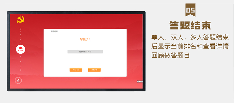 答題軟件是一款新型的互動類產(chǎn)品軟件,適用于學校,圖書館,展廳,幼兒園等各種場合,通過“答題軟件”回答相應的問題能夠使體驗者很容易的地去接受和理解,不僅能提高用戶的體驗感也能做到一種文化傳播的作用,提高自我價值。在這個快速發(fā)展的時代,人們對自我價值的提升是非常看重的,“答題軟件”的橫空出世不僅彌補了這一地方的空缺,也為社會的進步,推波助瀾,增添光彩,很好地展現(xiàn)出這一內(nèi)容的重要性。